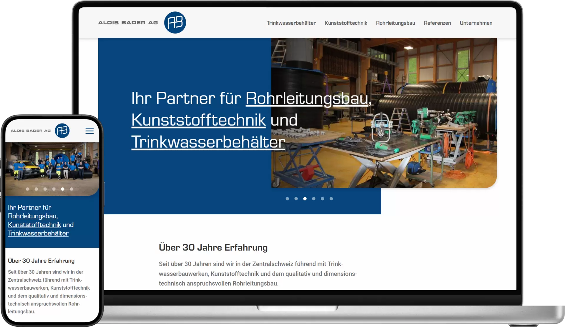 Die Alois Bader AG ist schweizweit bekannt für Trinkwasserbauwerke, Kunststofftechnik und Rohrleitungsbau. Unsere Arbeiten: